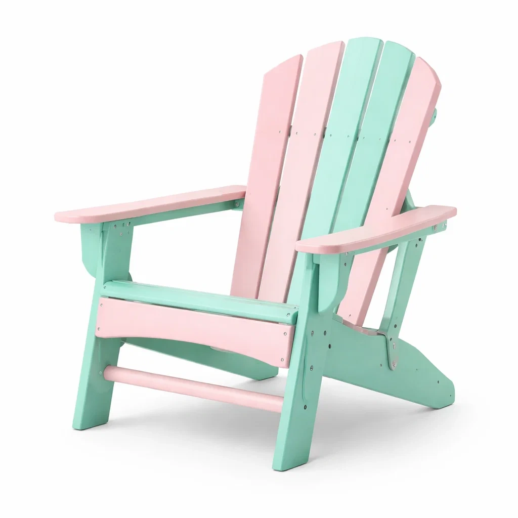 Cette chaise Adirondack est fabriquée en bois durable. Elle mesure 93 cm de longueur, 75 cm de largeur et 90 cm de hauteur. Convient aux environnements extérieurs. La chaise est colorée en rose et vert.