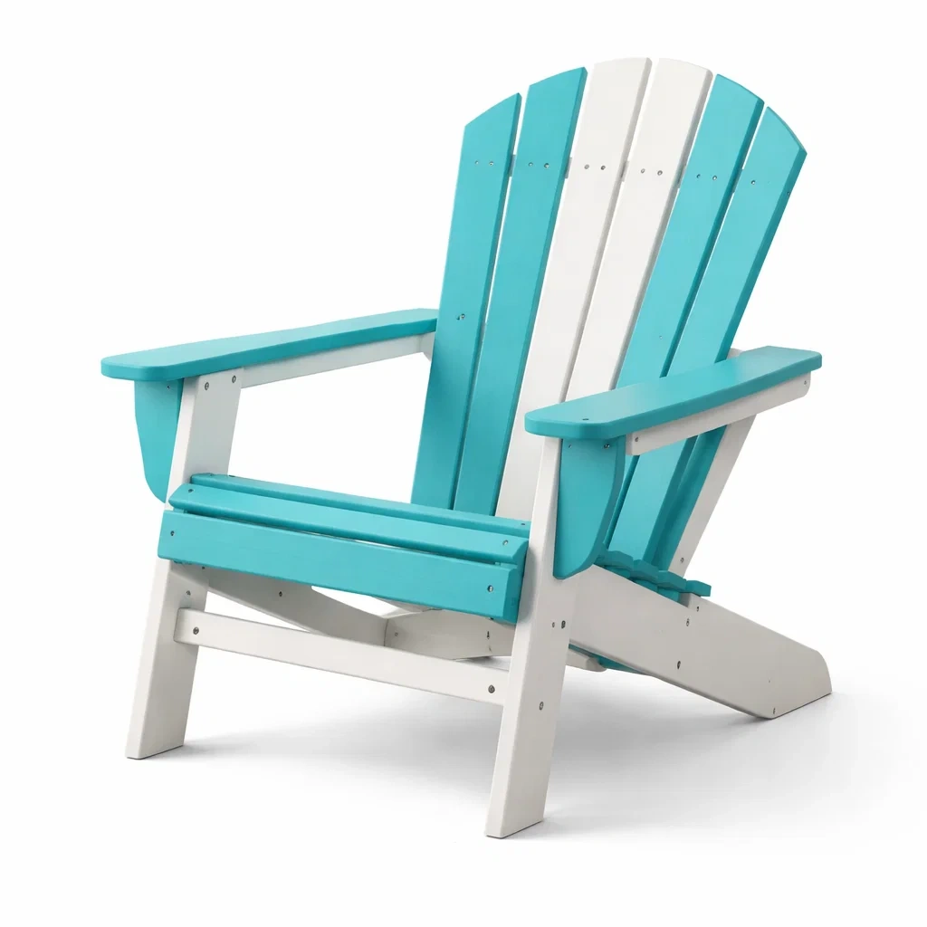Chaise Adirondack fabriquée en plastique polyéthylène recyclé durable.