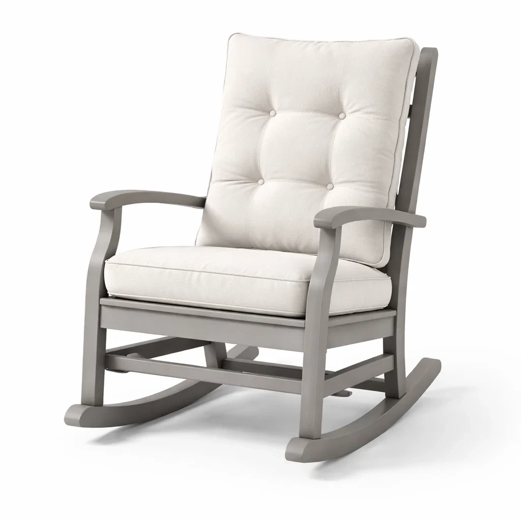 Fauteuil à bascule en bois avec coussins en coton gris 90x60x100 cm