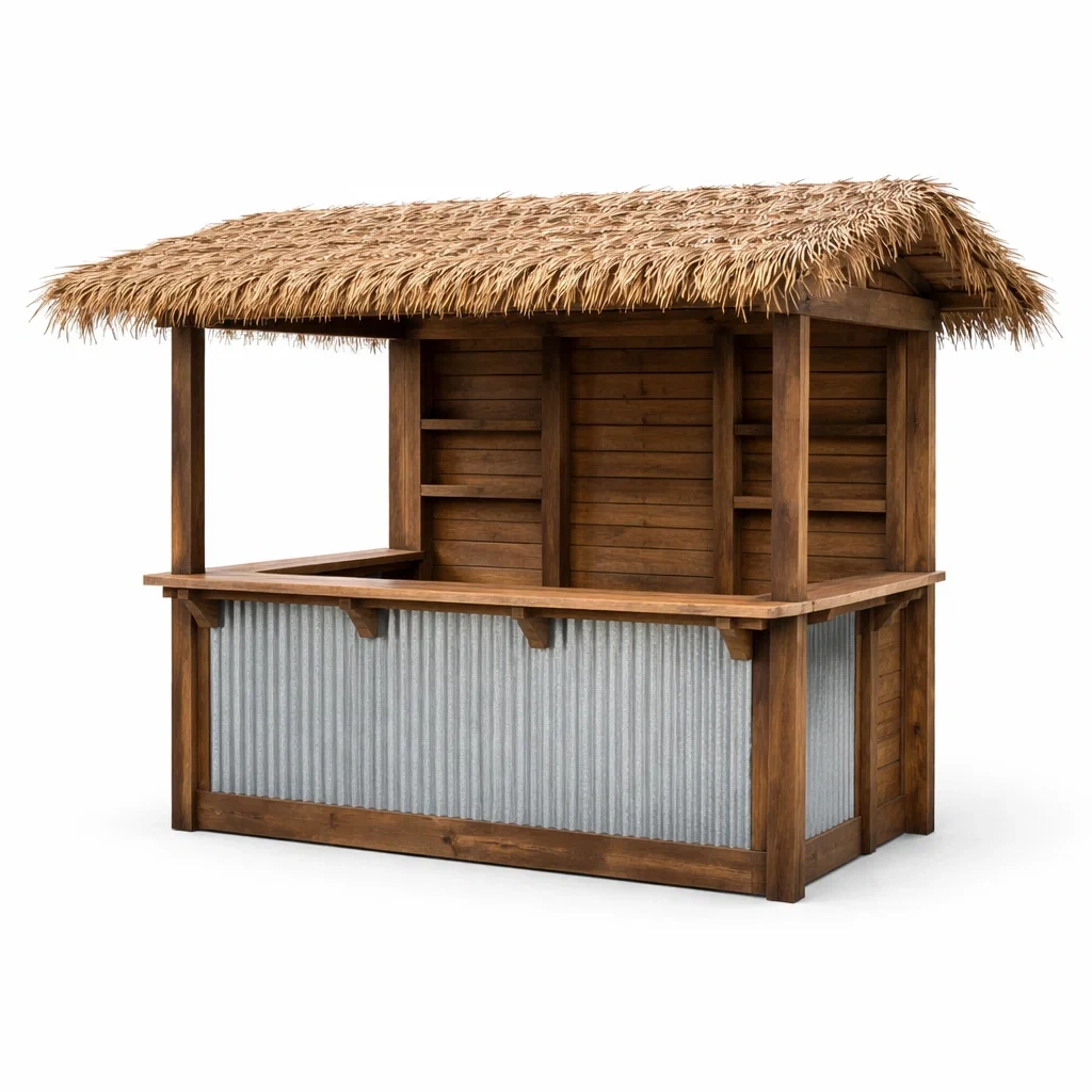 Kiosque bar de jardin en bois et acier avec toit en chaume